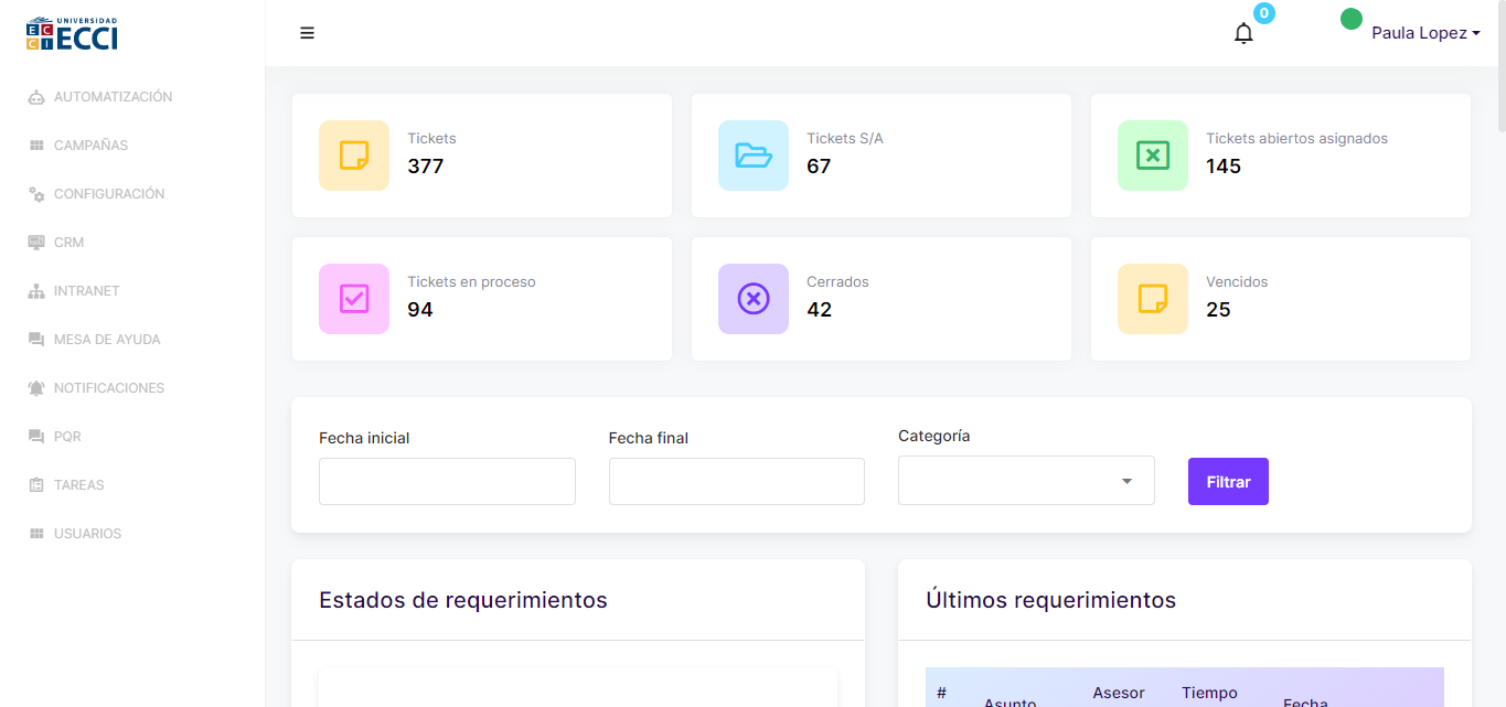 - Soporte y Mantenimiento de la plataforma para garantizar el correcto funcionamiento
